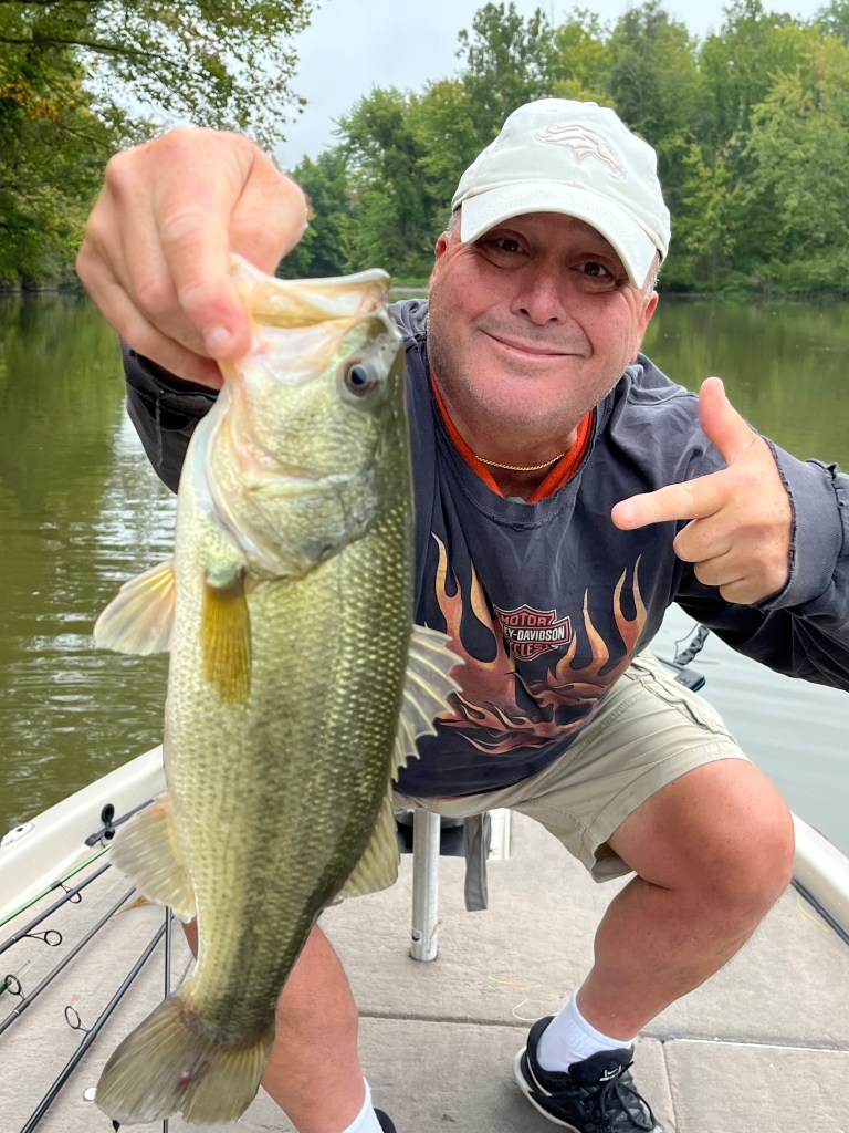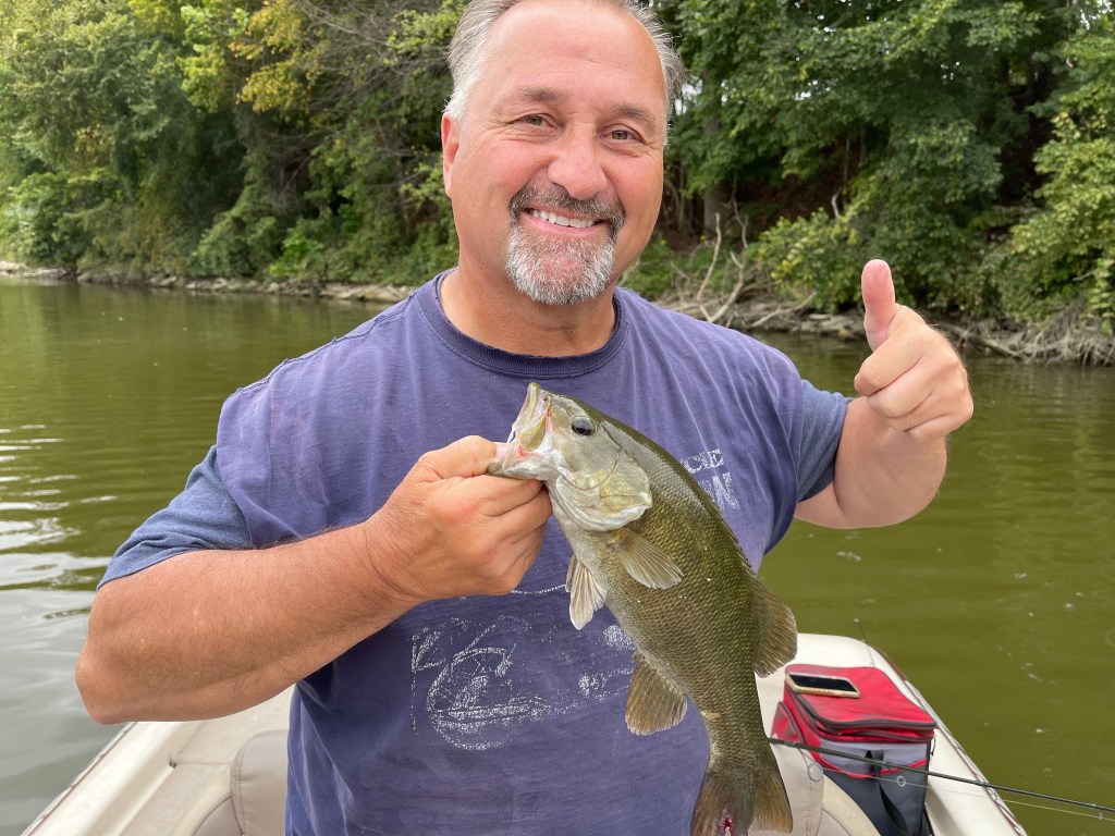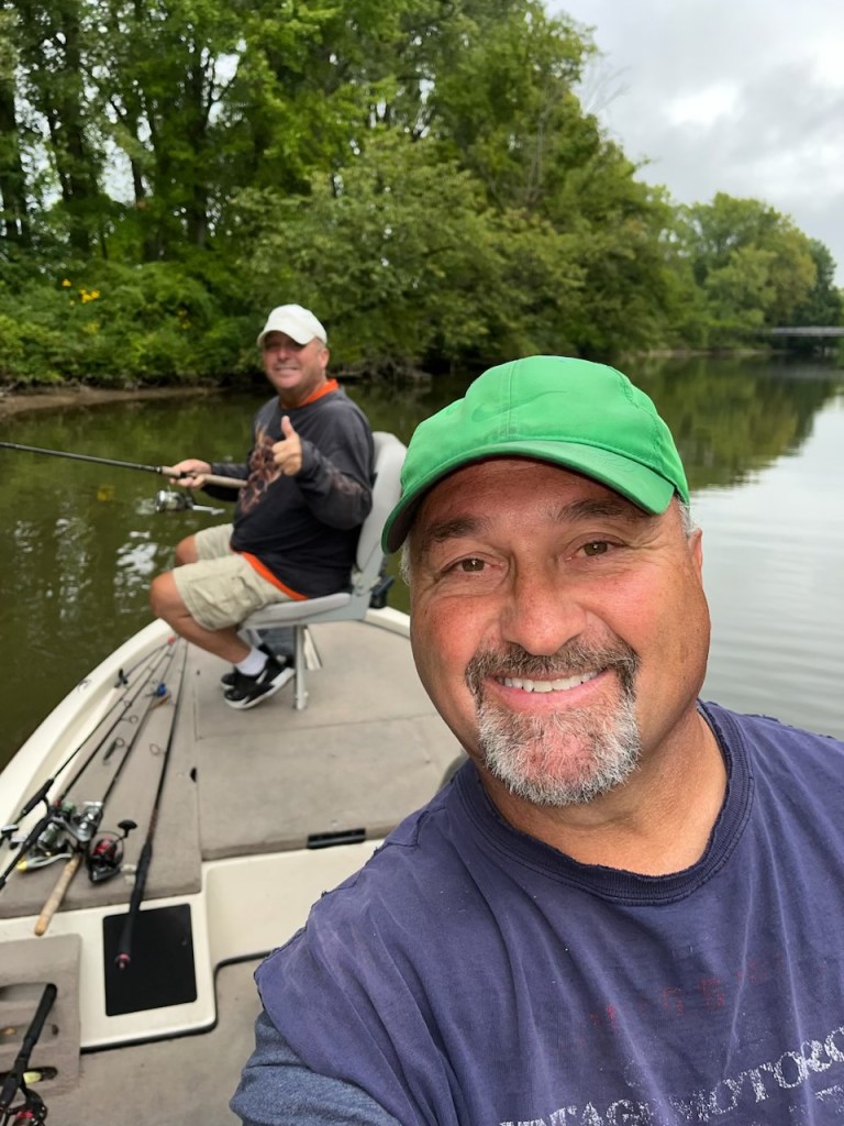Usually we head out in the boat and find a spot to fish. On this day, we went to a place close to Greentown, our hometown, called Wildcat Creek. It was a great day with Bubsy 😉